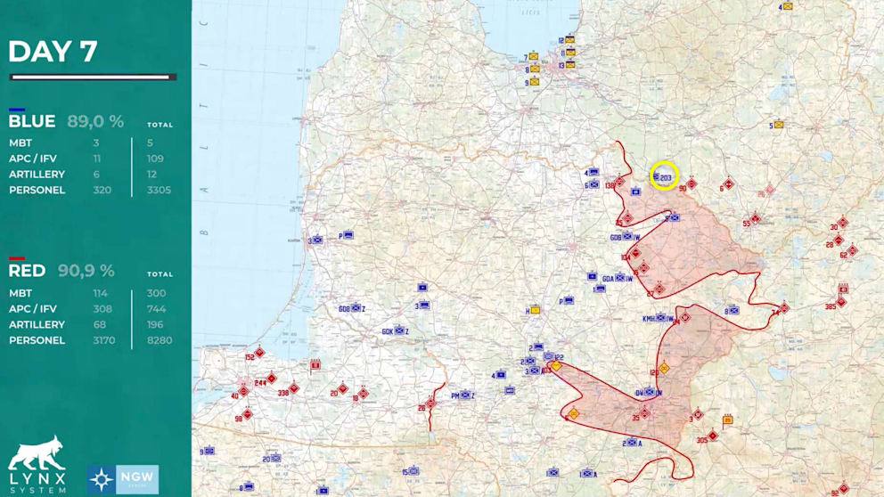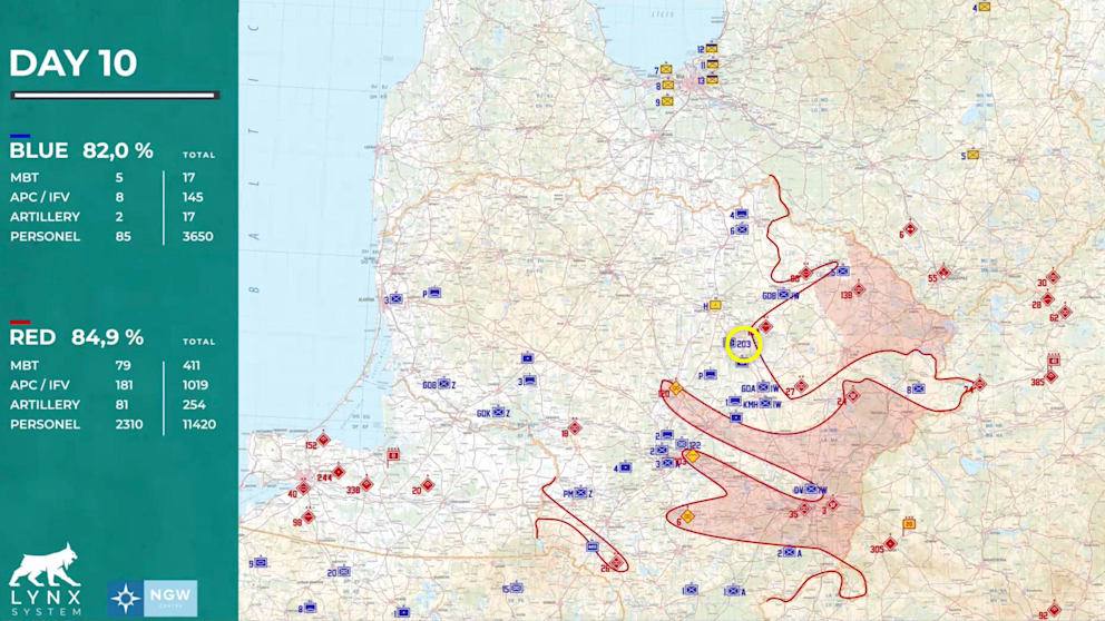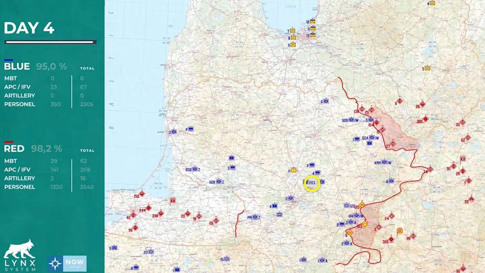 До кінця четвертого дня подій, німецький танковий батальйон утримується в центрі як резерв. На п’ятий день симуляційної війни 44 німецькі танки Leopard 2 прямують на північ, швидко виходять за межі Литви і на сьомий день заходять у фланг основним російським силам, що наступають з Латвії.