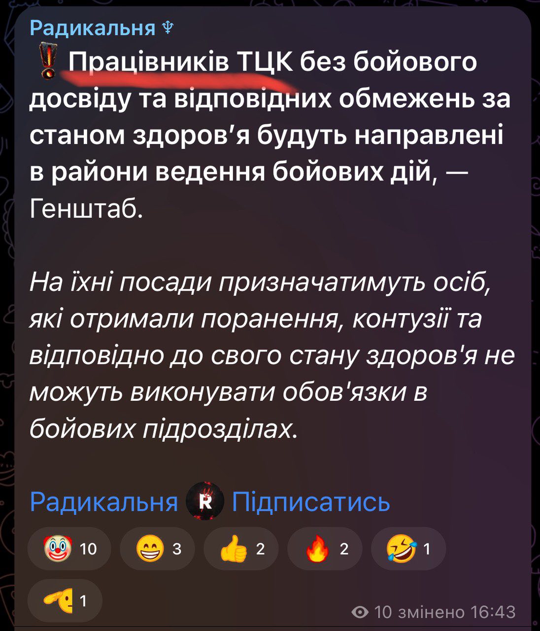 Кадровий військовий, полковник Олександр Грамарчук на псевдо “Гром” закликав парламентарів посилити відповідальність за викривлення та маніпуляцію повідомленнями у мережі. Обурення військовослужбовця викликало поширення блогерами підміни поняття “військовослужбовця” на “працівника” ТЦК, що призвели до хибного висвітлення заяви Генштабу.