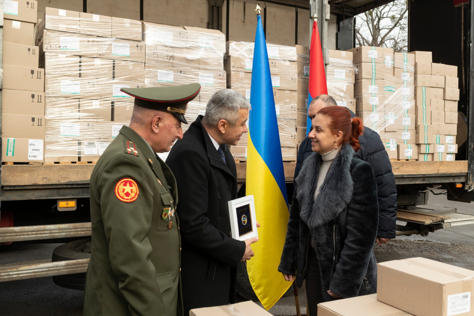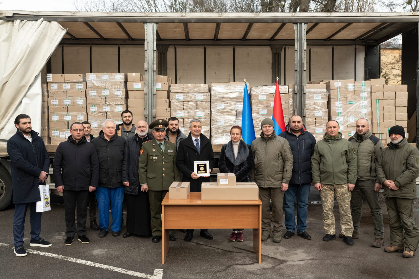 Представники Спілки вірменів України та Посольства Республіки Вірменія в Україні передали 10 тонн лікарських засобів Національному військово-медичному клінічному центру “Головний військовий клінічний госпіталь”.