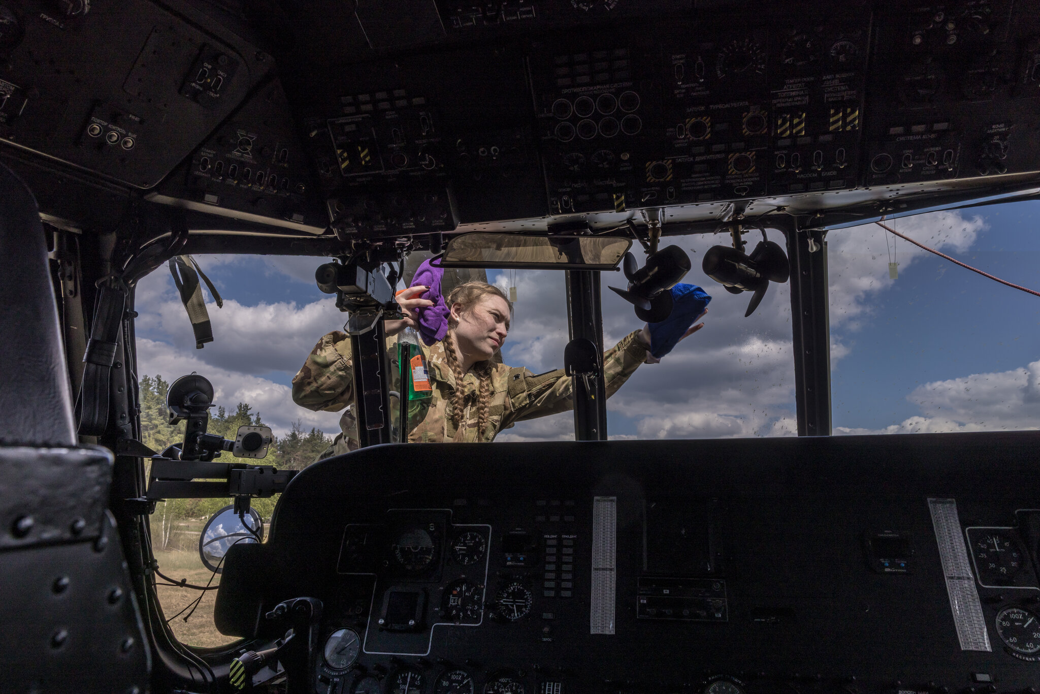 Старша лейтенантка Катерина, єдина жінка-пілот у Збройних силах України, біля вертольота Мі-8 – 30 квітня.