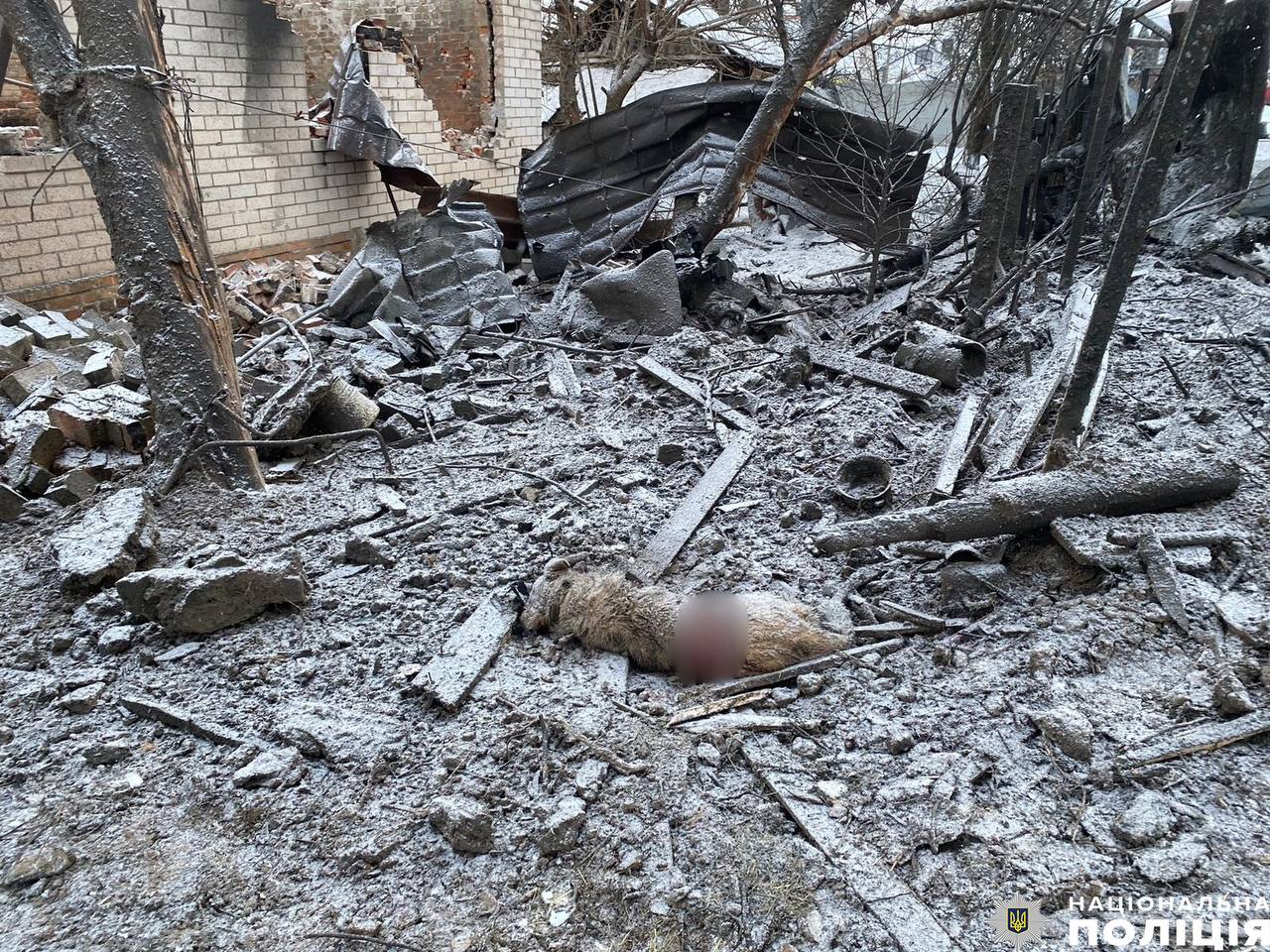 Відтак, внаслідок влучання уламків російської ракети пошкоджень зазнали кілька приватних будинків та нежитлових споруд, одну будівлю практично зруйновано. У дворі, найближчому до епіцентру події, від вибуху загинув собака господарів. Люди вціліли.