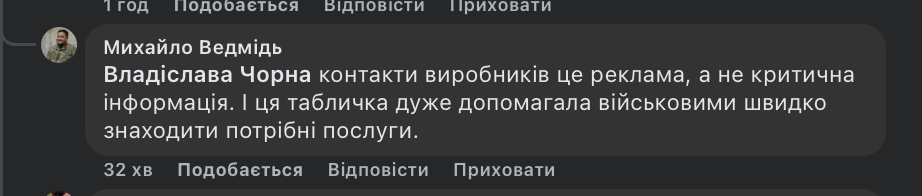 Також військовий Михайло Ведмідь закликав “не роздувати хайп”, підтвердивши, що оприлюдненому списку насправді “100 років”. Він також підтвердив, що ця інформація насправді мала важливе значення, позаяк допомагала військовим швидко знаходити потрібні послуги.