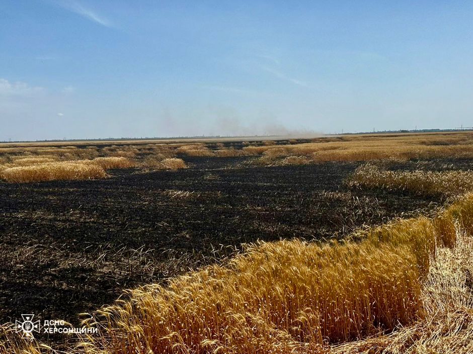 У Державній службі України з надзвичайних ситуацій акцентували, що російську війська цілеспрямовано знищують новий урожай та екосистеми Херсонщини.