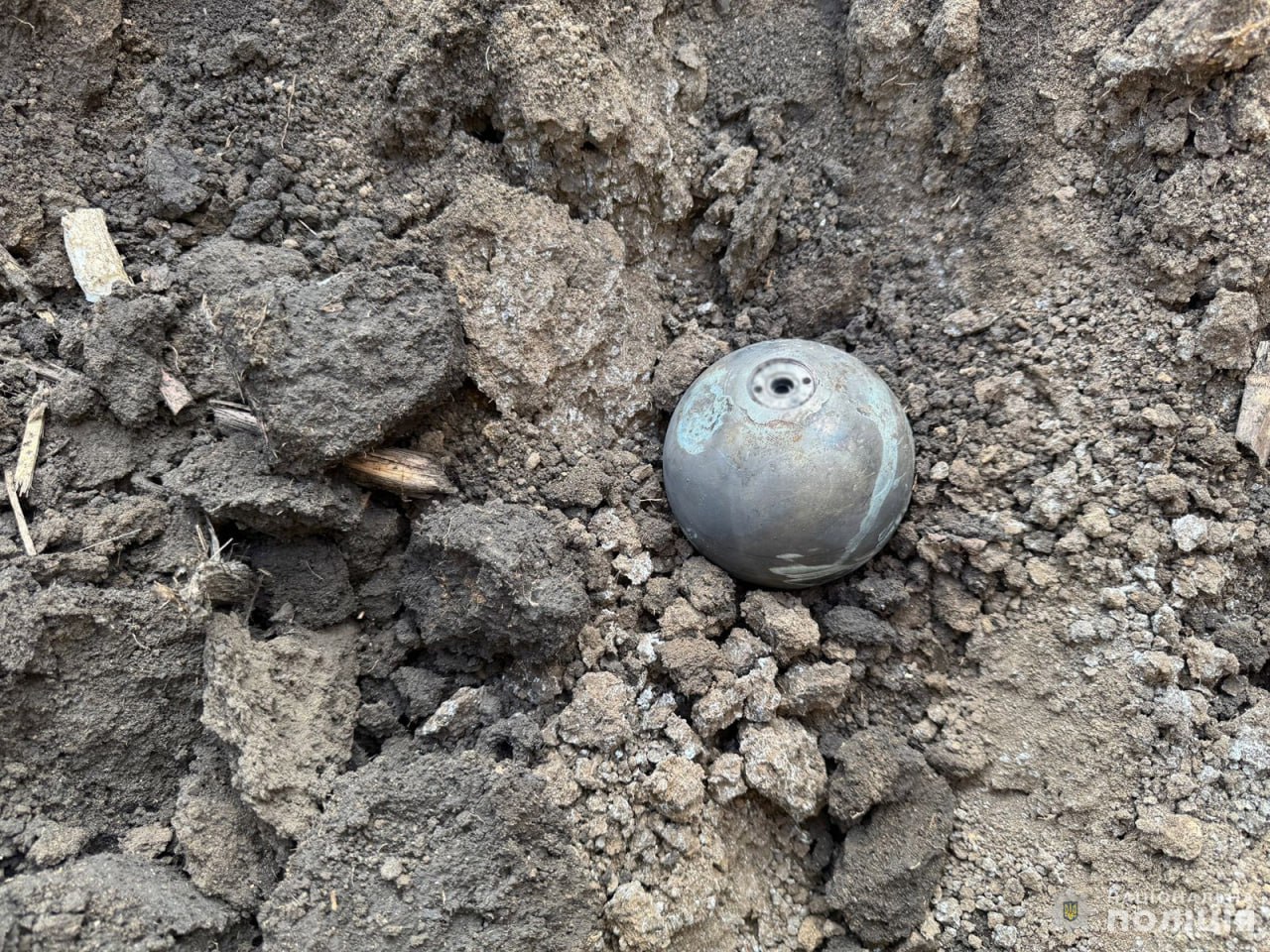Небезпечна знахідка знаходилась під шаром ґрунту на полі. Поліцейські знищили її шляхом контрольованого підриву на місці з дотриманням усіх норм безпеки, – мовиться у повідомленні.