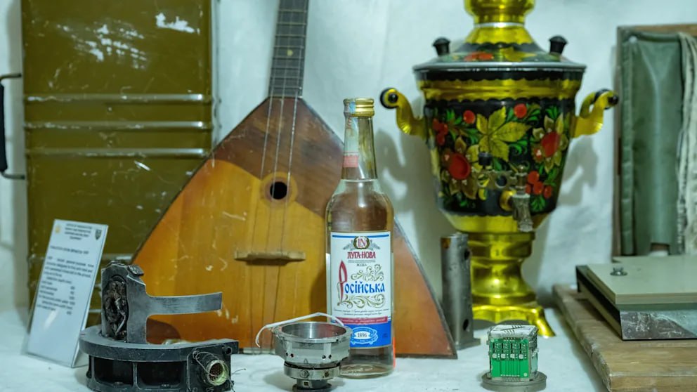 Директор музею Енно Ленце особисто відвідав воюючу країну для збору артефактів, частину з них надала українська влада. Один із них – частина російської ракети Х-101, її вперше виставлено за кордоном. На іншому стенді – бортовий комп’ютер російського дрона із західними чіпами, поставленими в обхід санкцій. На третьому – балалайка, самовар та пляшка горілки, – усе це російські солдати кинули при відступі.
