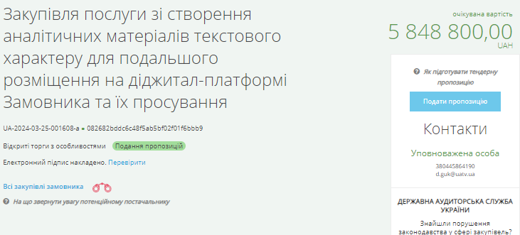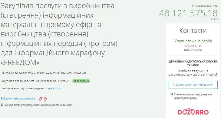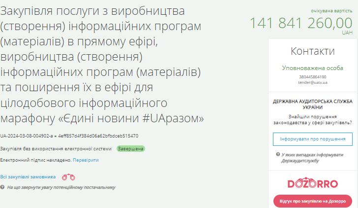 Він додав, що деякі тендери оголосили одразу на понад 100 млн грн. Тоді як найбільший тендер відбувся 13 березня, де лот на 190 млн грн отримав канал “Ми-Україна”.