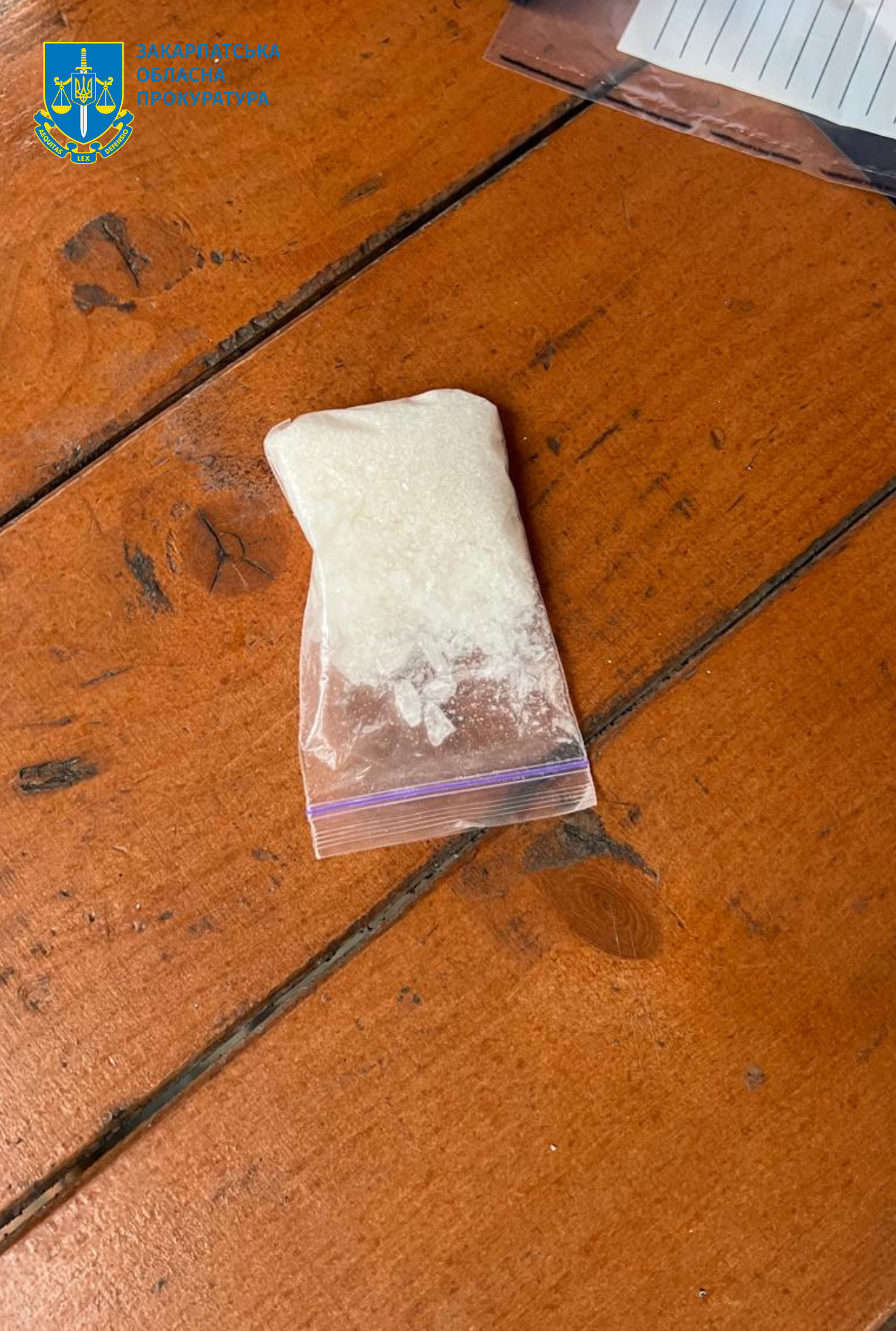 За процесуального керівництва Закарпатської обласної прокуратури правоохоронцеві повідомлено про підозру у незаконному придбанні, зберіганні, перевезенні та збуті психотропної речовини (ч. 2 ст. 307 КК України).