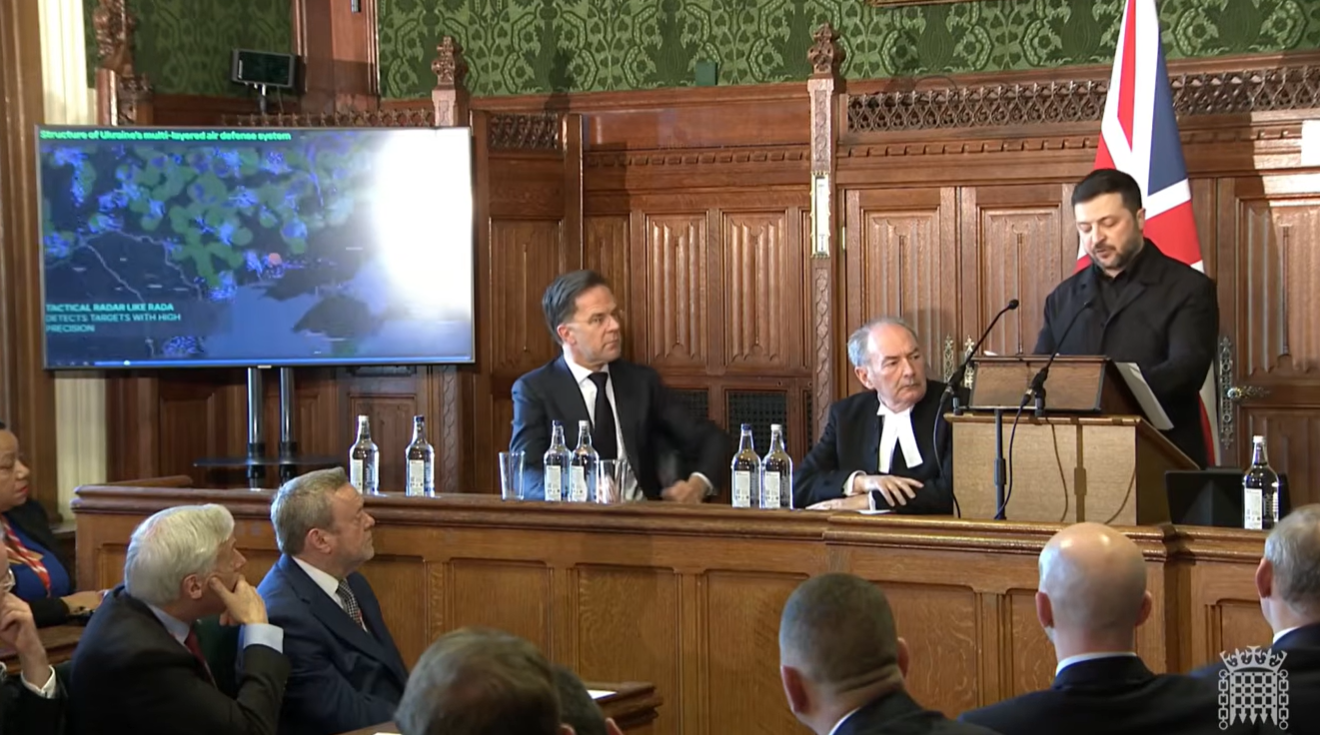 Джерело: Володимир Зеленський під час виступу в британському Парламенті (YouTube: Офіс Президента України).