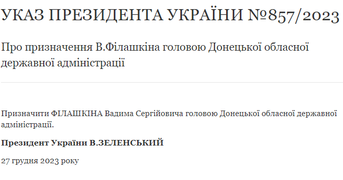 12 грудня уряд погодив кандидатуру Філашкіна на посаду очільника обласної адміністрації. Призначає керівників обласних адміністрацій президент.