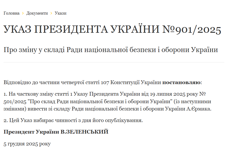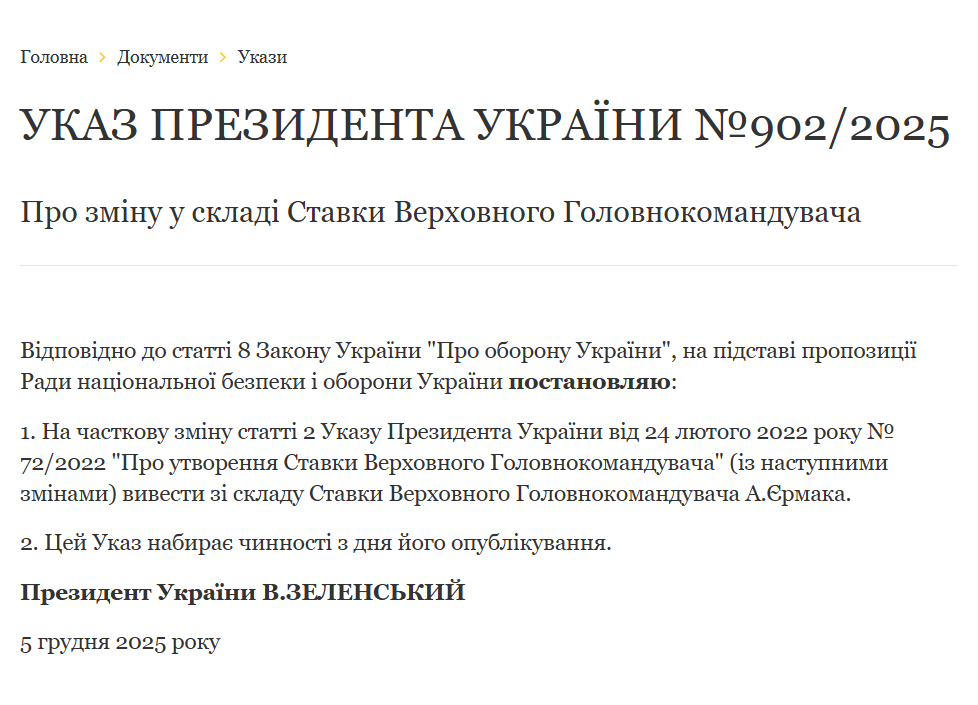 Зеленський вивів Єрмака зі складу РНБО і Ставки верховного головнокомандувача