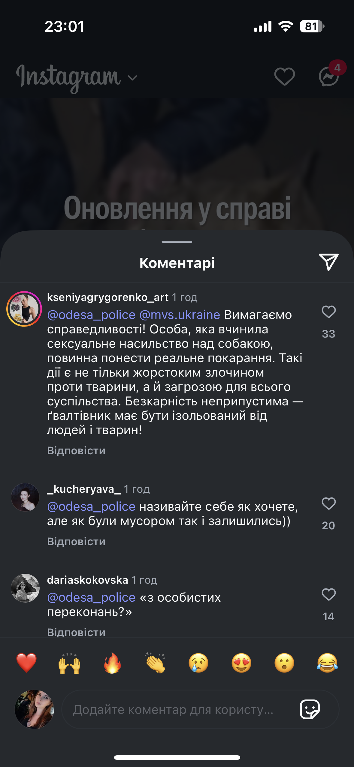 Варто зауважити, що користувачі масово відмічають поліцію Одещини та МВС, позаяк станом на сьогодні правоохоронці досі не прокоментували те, чому їхній слідчий з якихось “особистих переконань” не затримував ґвалтівника та відмовлявся вилучати собаку.