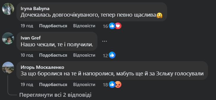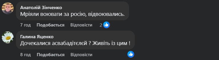 У коментарях до публікації користувачі здебільшого реагували висловами на кшталт “так їм і треба”.