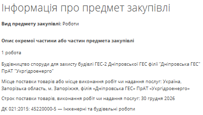 До цього найбільшим замовленням “Укргідроенерго” по будівництву захисту від ударів РФ було замовлення на захист Дністровської ГАЕС вартістю 4,19 млрд грн. Тоді підрядником обрали житомирське ПП “Елітбуд-1”, котре за історію свого існування мала місцеві підряди на ремонт лікарень та шкіл.