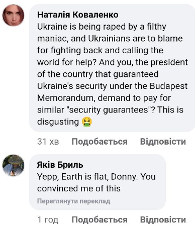 Реакція українців не змусила на себе чекати. Так, надати свої відповіді “без матюків! І без ґвалту” зауваженню американського президента запропонував на сторінці Яків Бриль.
